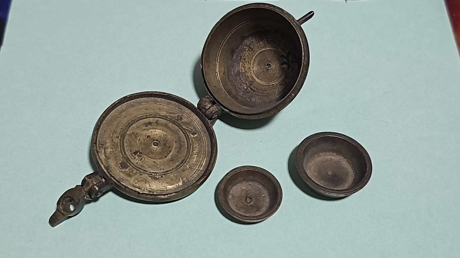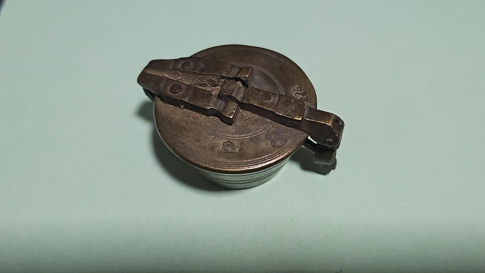 QUINTEIRO/CADINHO/CRISOL – RARÍSSIMO E ANTIGO QUINTEIRO (TAMBÉM CONHECIDO COMO CADINHO/CRISOL) sendo em 03 peças como fotos, CONFECCIONADO EM BRONZE MACIÇO, USADO NO SÉCULO XIX PARA MEDIDA E FUNDIÇÃO DE OURO. PEÇA COMPLETA como nas fotos E EM PERFEITO ESTADO (RARIDADE). TAMANHOS APROXIMADOS: 55.8 MM DE COMPRIMENTO; 35.7 MM DE ALTURA. PEÇA VENDIDA CONFORME FOTOS. NOTA: Cadinho ou Crisol é um recipiente em forma de pote, normalmente com características refractárias, resistente a temperaturas elevadas, onde se fundem materiais à altas temperaturas. O ourives e o alquimista usam-no há muitos séculos para purificar o ouro, daí ter também significado figurado.